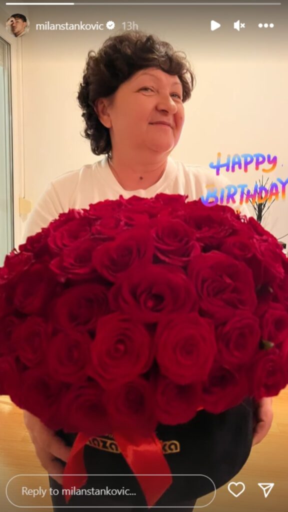 Na fotografiji možemo videti njegovu majku sa velikim buketom crvenih ruža, a pevač joj je čestitao rođendan.