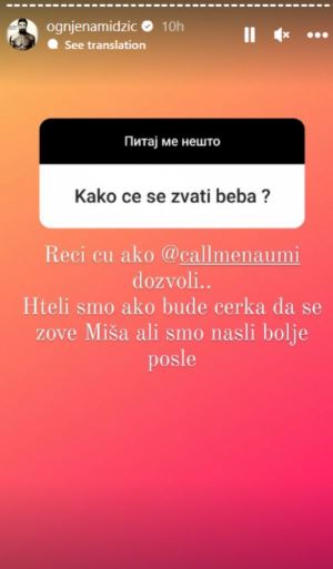Kada su fanovi pitali za ime ćerkice, Ognjen je otkrio da su razmišljali o imenu Miša, ali da su na kraju odabrali drugo ime. Mina još uvek čuva tu informaciju kao tajnu, ostavljajući prostora za iznenađenje.