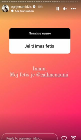 Ognjen je nedavno odgovarao na pitanja svojih pratilaca na društvenim mrežama, otkrivajući nekoliko detalja o trudnoći i ličnim sklonostima. Na pitanje o fetišima, voditelj je sa osmehom odgovorio: „Moj fetiš je Mina,“ ističući svoju ljubav prema supruzi.