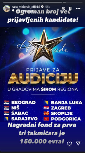 “Ogroman broj već prijavljenih kandidata! Nagradni fond za prva tri takmičara je 150.000 evra!”, napisao je najbolji muzički producent na našim prostorima.