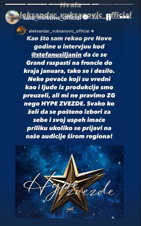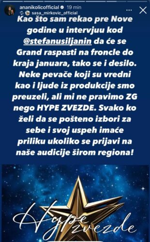 Ana je istovremeno dala podršku novom takmičenju „Hype Zvezde“, verujući da će ovaj projekat osvojiti region i postati prava muzička senzacija.