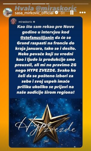 Uz novo muzičko takmičenje „Hype Zvezde“, najveću podršku pružile su i muzičke ikone Mira Škorić, Miroslav Ilić i Aca Lukas, koji su, prema spekulacijama, vrlo verovatno deo žirija ovog takmičenja.