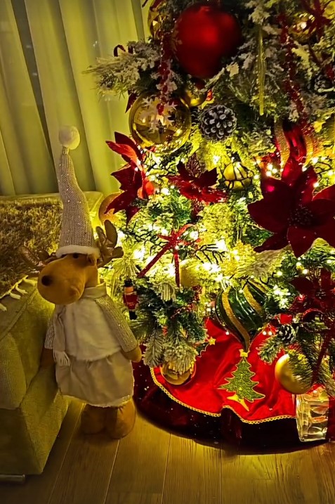 Pevačica je svoju jelku prepunila ukrasima, stavila je svećice, a ispred nje je postavila igračke u obliku irvasa sa kapama. Dok na granama jelke visi sneg. Nema šta pevačica se baš potrudila da njena prva jelka u novom stanu odiše luksuzom i glamurom.