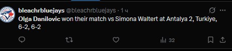 Srpska teniserka Olga Danilović plasirala se u polufinale Čelendžeru u Antaliji, pošto je ubedljivom pobedom savladala Švajcarkinju Simonu Volter 2:0 (po setovima 6:2, 6:2).