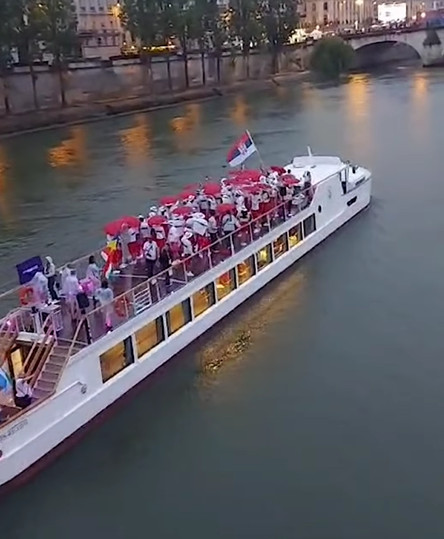 Vaterpolista Dušan Mandić i odbojkašica Maja Ognjenović nosili su zastavu naše zemlje. Na Instagram profilu predsednika Srbije Aleksandra Vučića osvanuo je snimak na kojem vidimo sportiste sa broda.