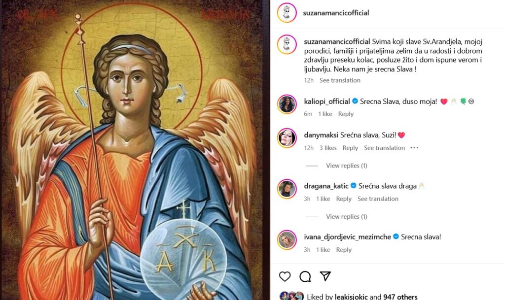 Mančićeva je postavila fotografiju na svom instagram profilu i čestitala svim pravoslavnim vernicima koji danas obeležavaju danas Svetog Aranđela, koju ujedno i njena porodica obeležava.