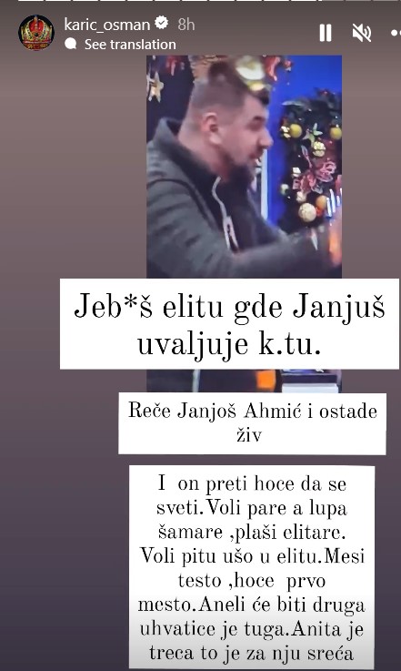 – Je*eš Elitu gde Janjuš uvaljuje ki*u… I on preti, hoće da se sveti… Voli pare, a lupa šamare, plaši elitare… Voli pitu, ušo u Elitu, mesi testo, hoće prvo mesto… Aneli će biti druga, uhvatiće je tuga. Anita je treća to je za nju sreća – napisao je Osman između ostalog.