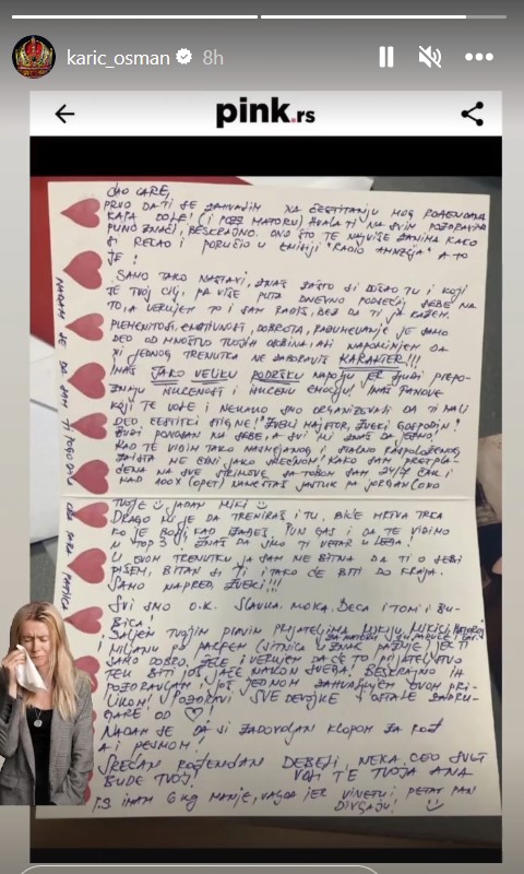 Osman je došao u posed pisma koje je svojevremeno Ana pisala Zvezdanu Slavniću kada je bio u rijalitiju. On je podelio Anino pismo Zvezdanu u kojem je napisala šta sve oseća prema njemu i koliko ga voli, a pored toga je stavio i sliku žene koji plače, aludirajući na Anine tužna izlaganja o Zvezdanu.