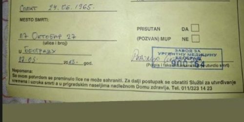 Kako su je neki odmah napali tvrdeći da izmišlja da bi privukla pažnju, Ava je objavila dokument koji su potpisali lekari nakon što su konstatovali smrt.