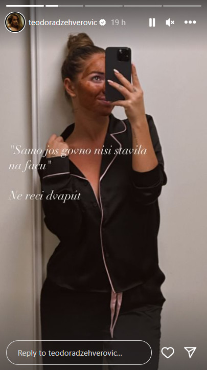 Naime, postavila je fotografiju na svom Instagram nalogu koja je zgranula mnoge fanove. Teodora je na fotki nasmejana sa pilingom na licu i uz to dodala komenar: „Samo još g*vno nisi stavila na facu – ne reci dvaput!“