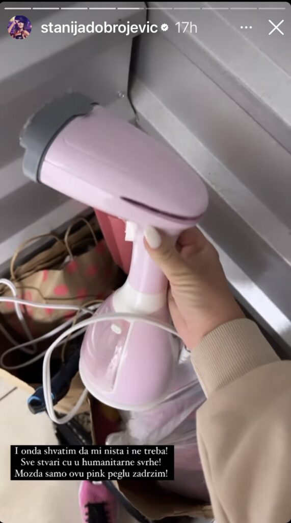 -I onda shvatim da mi ništa i ne treba! Sve stvari ću u humanitarne svrhe Možda samo ovu pink peglu zadržim – napisala je Stanija.