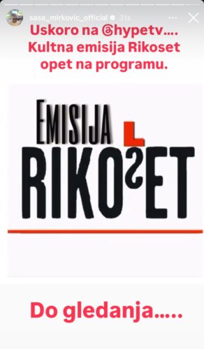 „Uskoro na Hype TV. Kultna emisija Rikošet opet na programu. Do gledanja...“, napisao je Mirković u sklopu Insta priče.