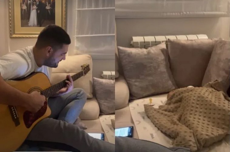 Reading: OVAJ PRIZOR ĆE VAS RAZNEŽITI! Perućica sa gitarom u ruci, uspavljuje svog sina prvenca