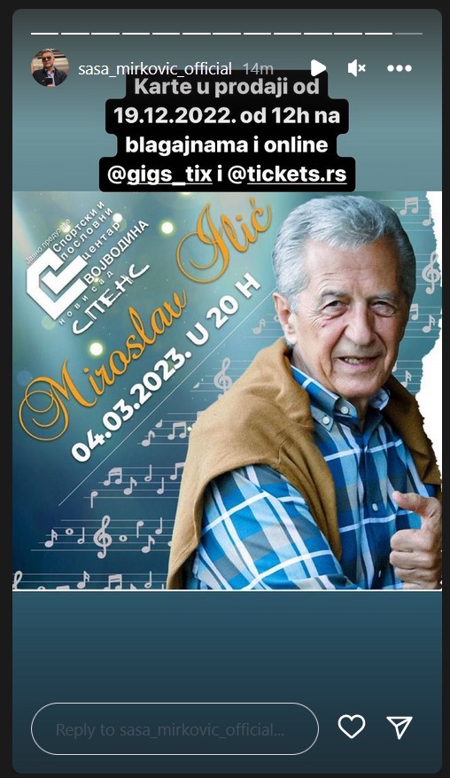 Vlasnik HYPE produkcije Saša Mirković, pod čijom dirigentskom palicom nastupa Miroslav Ilić, prirediće u Srpskoj Atini koncert legendarnog pevača, onaj koji se pamti i ostavlja trag i sjaj u vremenu.