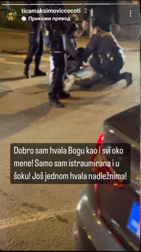 Na jednom od storija slikala je kako su nadležni organi oborili napadača na zemlju, stavili mu lisice i priveli.