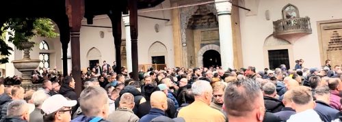 Velike gužve stvorile su se na samom ulasku u džamiju, a njegov sin sa unucima jedva se probio kroz masu kako bi ušao u dvorište džamije.