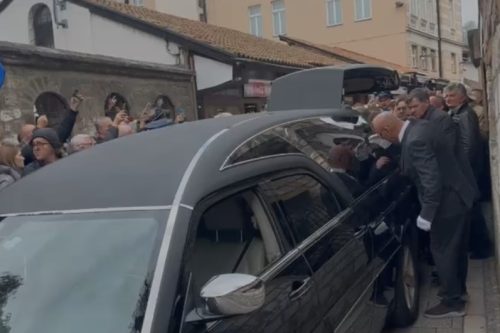 Ogroman broj ljudi došao je da se pokloni preminulom pevaču. A ispred je stajao crni automobil, kojim će telo pevača proći poslednji put ulicama Sarajeva. Tačnije od Begove džamije do gradskog groblja Bare.