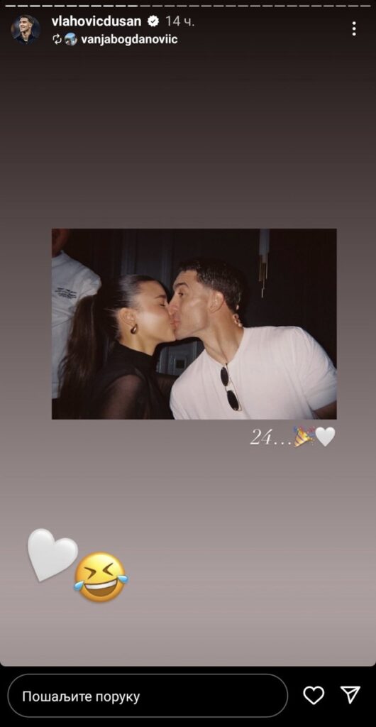 Na Dušanovom Instagram profilu pojavile su se brojne čestitke, ali je jedna posebno privukla pažnju – čestitka njegove devojke Vanje, koju je postavila na svoj Instagram storiju. Vanja je podelila njihovu zajedničku fotografiju na kojoj par razmenjuje nežnosti, uz poruku „24…“ i belo srce.
