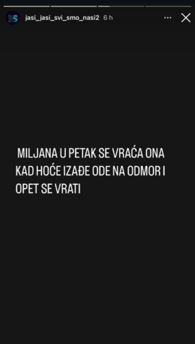 – Miljana se u petak vraća. Ona kada hoće, izađe malo na odmor, pa se vrati – navodi stranica na društvenoj mreži Instagram.