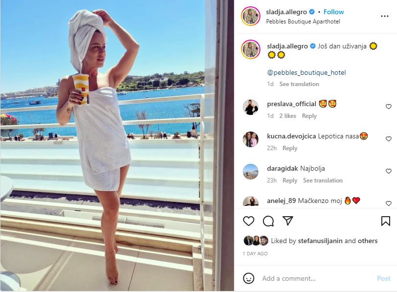 Pevačica Slađa Alegro je prve prolećne dane provela na moru, a mnoge iznenadila kada je na društvenoj mreži Instagram objavila fotografiju u izazovnom izdanju, što publika on nje nije navikla.