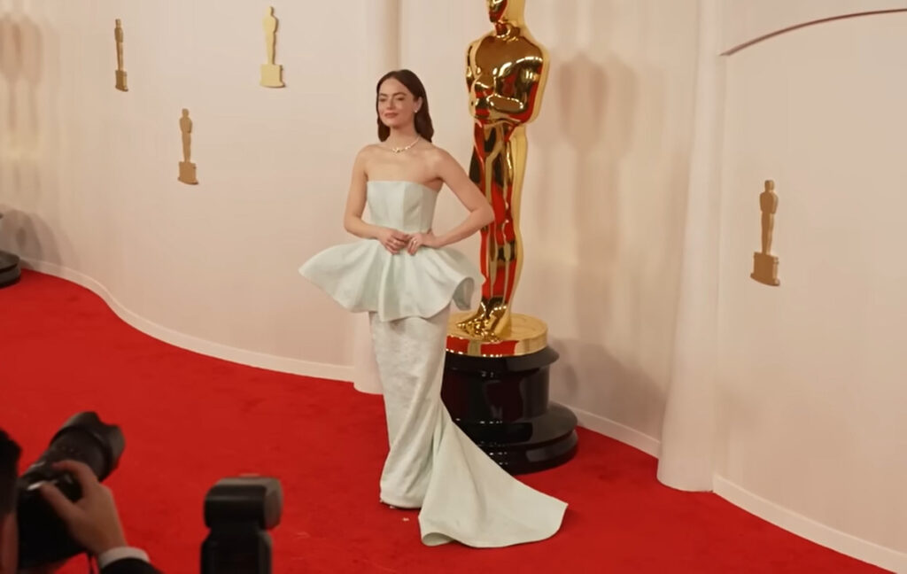 Ema Stoun je odnela Oskara u „Luj Viton“ kreaciji napravljenoj po narudžbi. Ova toaleta neobičnog kroja poseduje prenaglašene konture peščanog sata.Odnevši kući drugog Oskara za najbolju glumicu, Ema je u emotivnom govoru pokazala kako haljina nije izdržala uzbuđenje ove večeri – te je šav na leđima popustio tokom dodele.