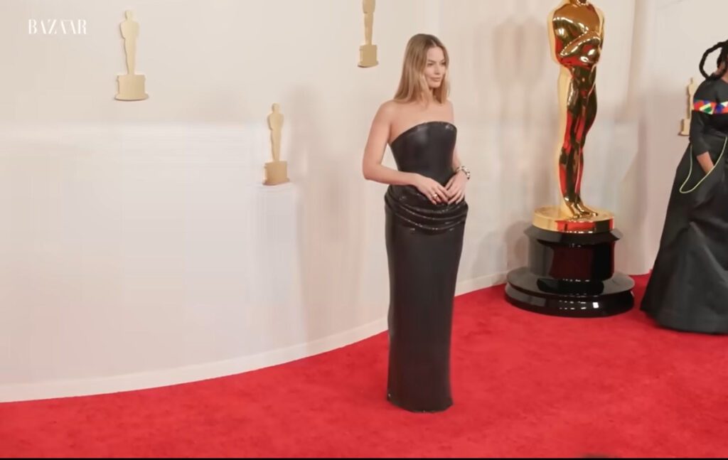 Iako se očekivalo da će se pojaviti u Barbi pink boji, Margo Robi je obukla crnu „Versaće“ haljinu sa sirena krojem.