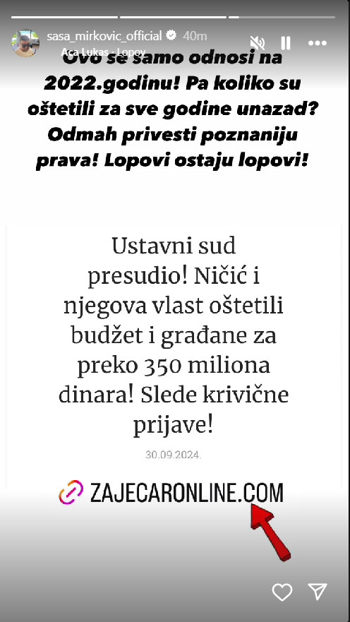 „PA KOLIKO SU OŠTETILI ZA SVE GODINE UNAZAD?“ Saša Mirković se oglasio nakon što je sud presudio da su Ničić i njegova vlast oštetili budžet i građane za 350 miliona!