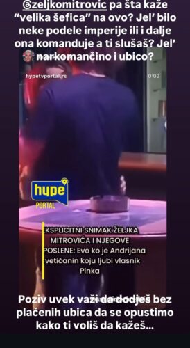 Inače, Mirković podneo krivičnu prijavu protiv Željka, koji mu je slao preteće poruke uznemirujućeg sadržaja. Inicijalna kapisla da Mirković povuče ovaj potez bila je ta da je Mitrović spominjao i Mirkovićevu porodicu na užasan način, što možete i pročitati: