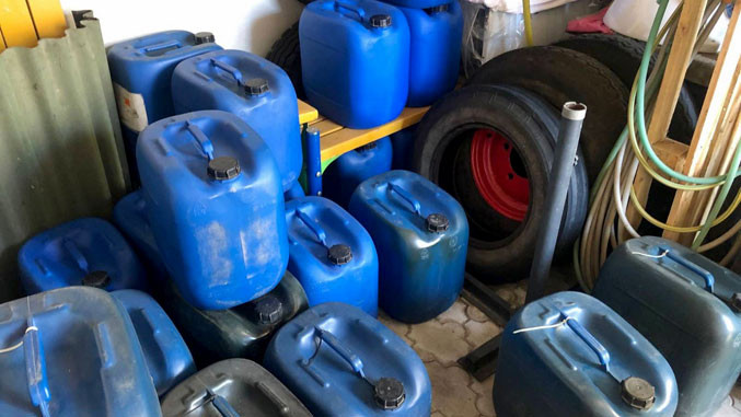 Policija u Vršcu, u prostorijama pedesettrogodišnjeg muškarca, pronašla je više kanistera i balona sa ukupno 1.145 litara dizel goriva, dok je u pretresu prostorija tridesetosmogodišnjeg muškarca u selu Padina u opštini Kovačica, u više buradi, nađeno 800 litara ovog goriva.