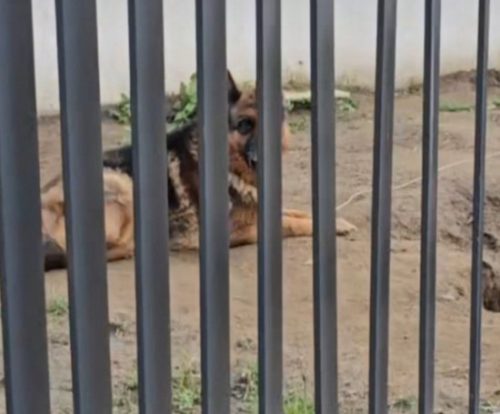 Na snimku se vidi pas koji leži u blatu, dok su oko njega velike rupe, a na rubu jedne stajala je bela kutija u kojoj nije bilo ni vode.