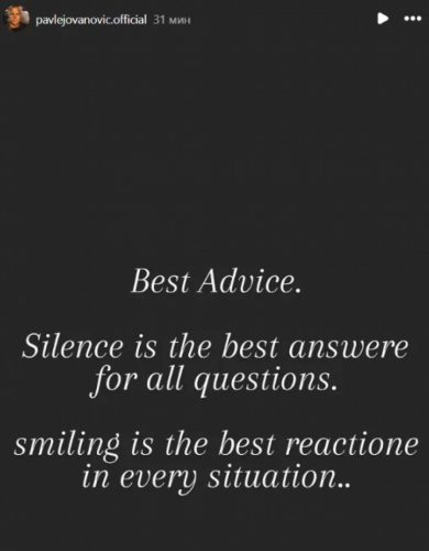– Najbolji savet: tišina je najbolji odgovor na sva pitanja, a osmeh najbolja reakcija u svakoj situaciji – poručio je Pavle.