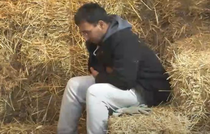 On je seo na seno i sa suzama u očima pričao sam sa sobom.