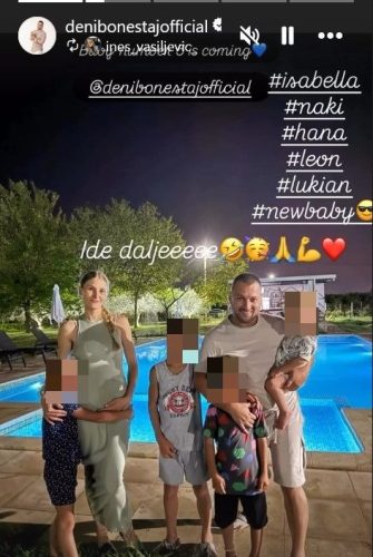 Čestitke stižu sa svih strana, a Deni se oglasio objavom na instagramu. Uz porodičnu sliku sa letovanja najavio je da stiže još jedan član. On sa suprugom Ines ima tri sina Nasera, Leona i Lukijana i devojčicu Hanu, dok pevač iz prvog braka ima ćerku.