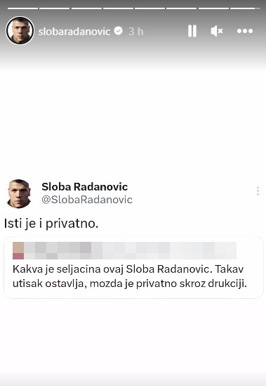– Kakva je seljačina ovaj Sloba Radanović. Takav utisak ostavlja, možda je privatno skroz drugačiji. – glasio je Tvit.