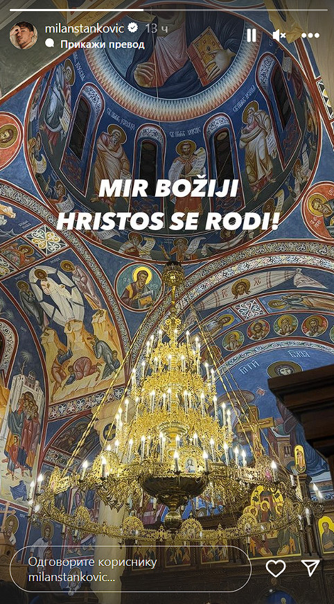 Milan Stanković se oglasio na svom Instagram profilu i čestitao Božić svim pravoslavnim hrišćanima.