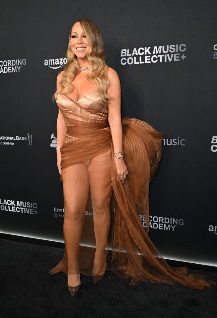 Pevačica Maraja Keri je nedavno zablistala na događaju u Los Anđelesu uoči dodele Gremi nagrada, noseći spektakularnu bež toaletu italijanskog brenda visoke mode „Schiaparelli“.