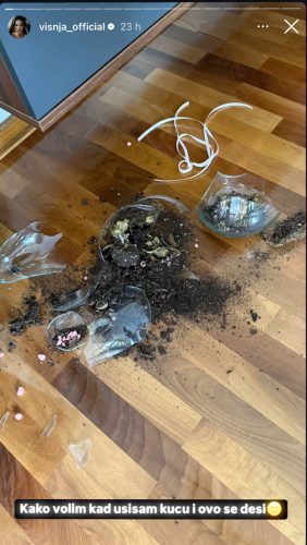 Višnja Petrović je podelila fotografiju na kojoj se vidi da je staklo svuda po podu! Pevačica je napravila opšti haos u stanu!