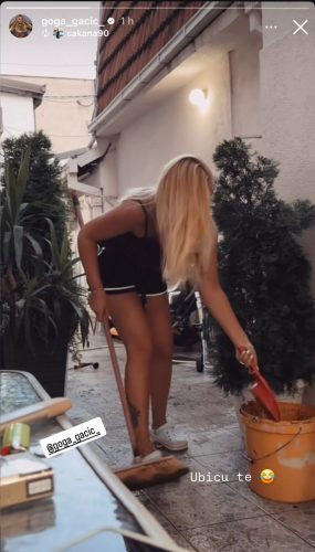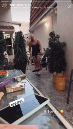 Naime, ona je na svom Instagram profilu podelila simpatičan trenutak iz svog života, pokazujući kako uživa u obavljanju kućnih poslova i čišćenju terase.