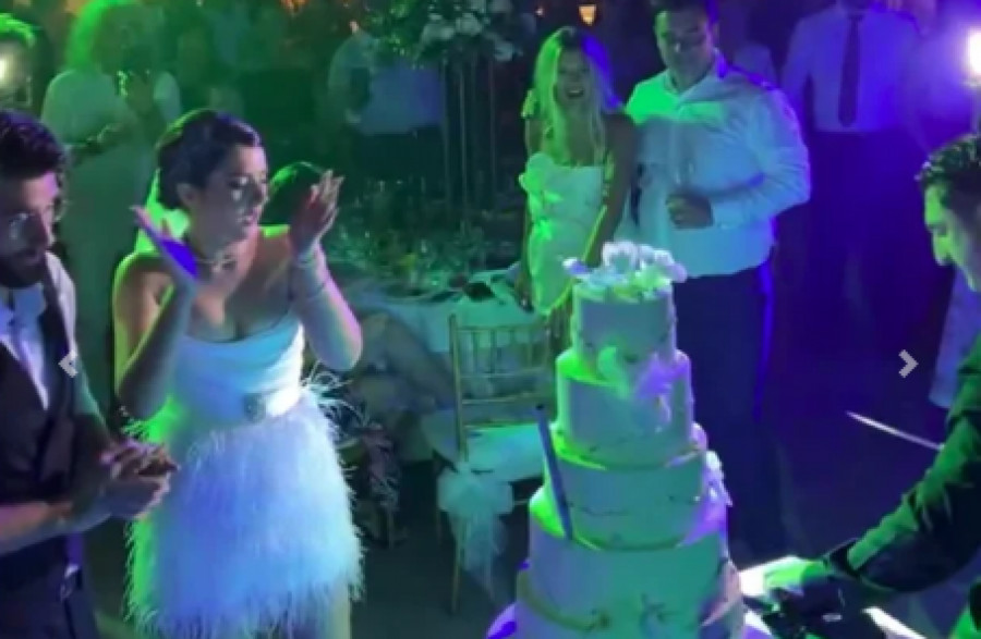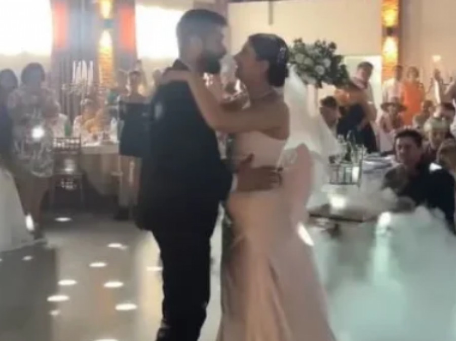 Vesela atmosfera počela je već ispred njhovog doma gde su okupljeni svatovi uz trubače igrali kolo nasred ulice, a kada su stigli u svečanu salu usledio je prvi ples uz pesmu „Just the two of us“ kojim su raznežili sve goste.