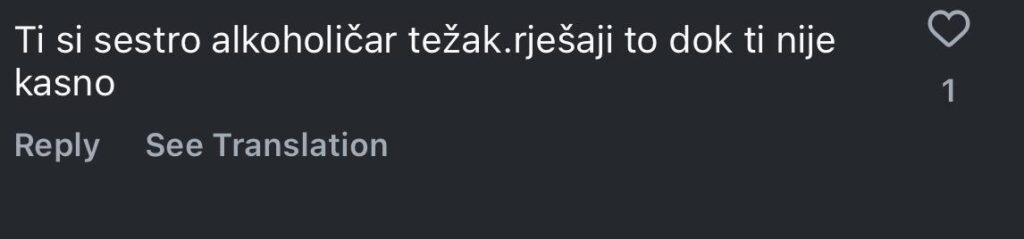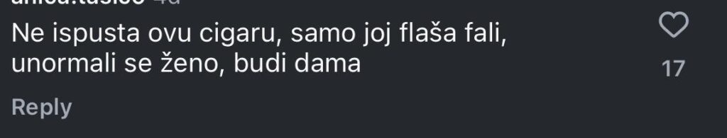 „Ti si sestro alkoholičar težak. Reši to dok ti nije kasno„, „Sva se klati„, „Ne ispušta ovu cigaru, samo joj flaša fali. Unormali se ženo, budi dama„, neki su od komentara.