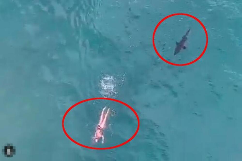 Dronom je uhvaćen uznemirujući trenutak u kojem morski pas prati plivača koji opušteno pliva. Zmijozuba sivka je snimljena kako u subotu ujutro prati plivača na plaži Bondi u Sidneju.