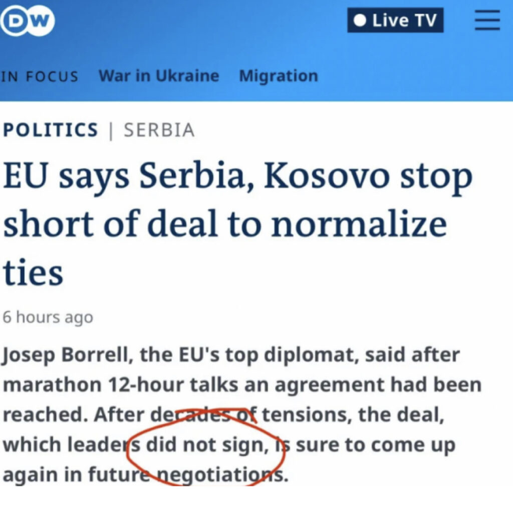 Svetski mediji izvestili su o dijalogu u Ohridu, prenoseći da nije ništa potpisano, a da je prva od obaveza lažne države Kosovo uspostavljanje ZSO.