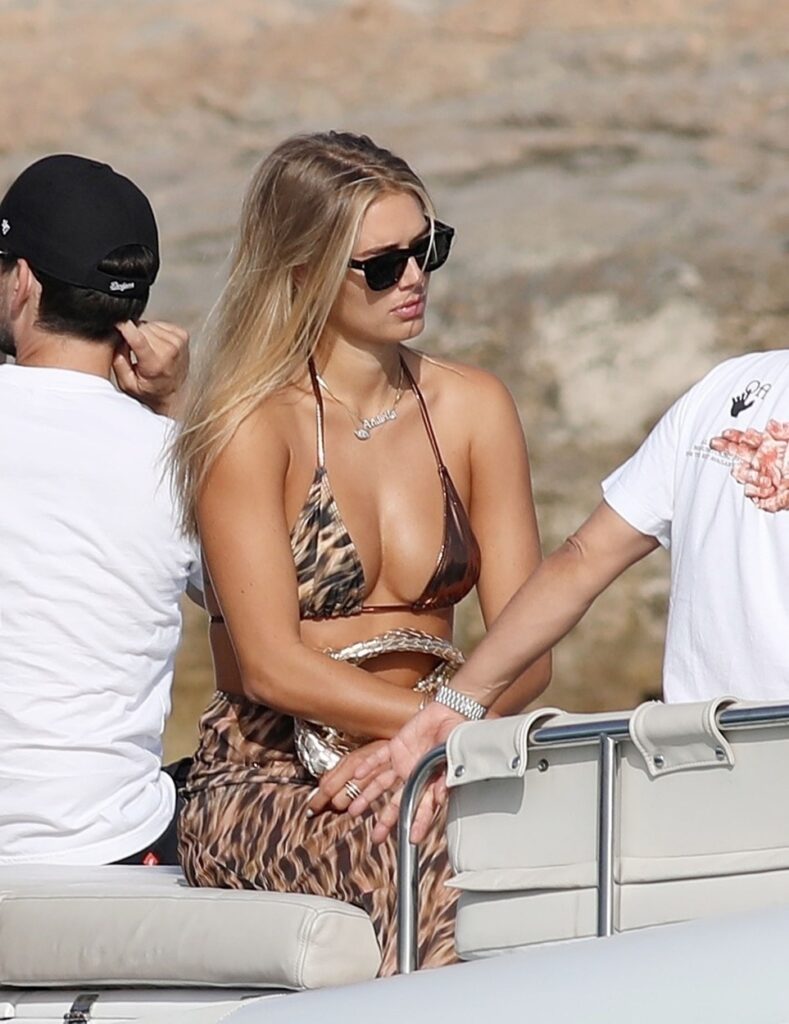 Paparaci su ih uslikali na jahti dok su krstarili Balearskim ostrvima, a kada su pristali na jednu plažu, lepotica je uskočila u vodu da se okupa.
