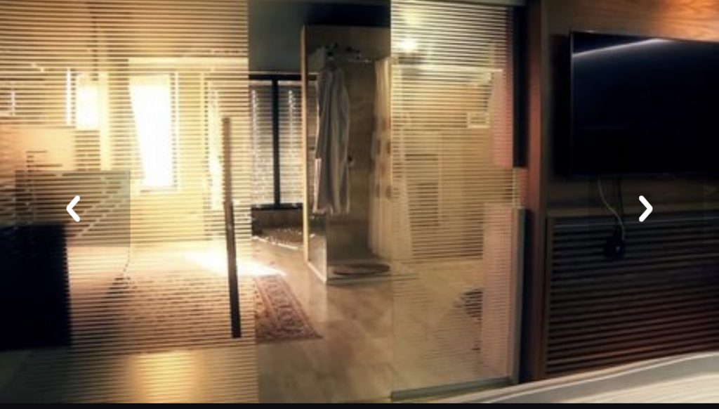 Iz pevačeve spavaće sobe ulazi se u ogormno kupatilo koje je odvojeno staklenim zidom tako da se iz kreveta sve jasno vidi. Pevač čak i u kupatilu ima umetničke fotografije, ali i posebne detalje za opuštanje.
