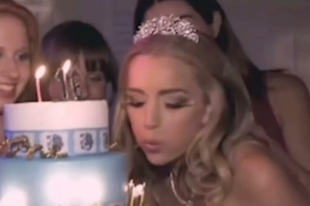 Ona na sebi ima dugu korset haljinu od roze šljokica i roze tijaru dok joj je duga plava kosa puštena u vidu talasa. Izgleda da se ona previše približila torti na dva sprata, pa dok je duvala svećice na donjem spratu, svećice na drugom spratu torte su upalile jednu njenu trepavicu. Devojka kreće panično da vrišti, međutim, i ostale njene zvanice kreću da paniče i vrište u isti glas, umesto da joj neko pomogne. Snimak se tu završava, pa se ne zna dalji ishod situacije, ali smatra se da nije bilo većih posledica.