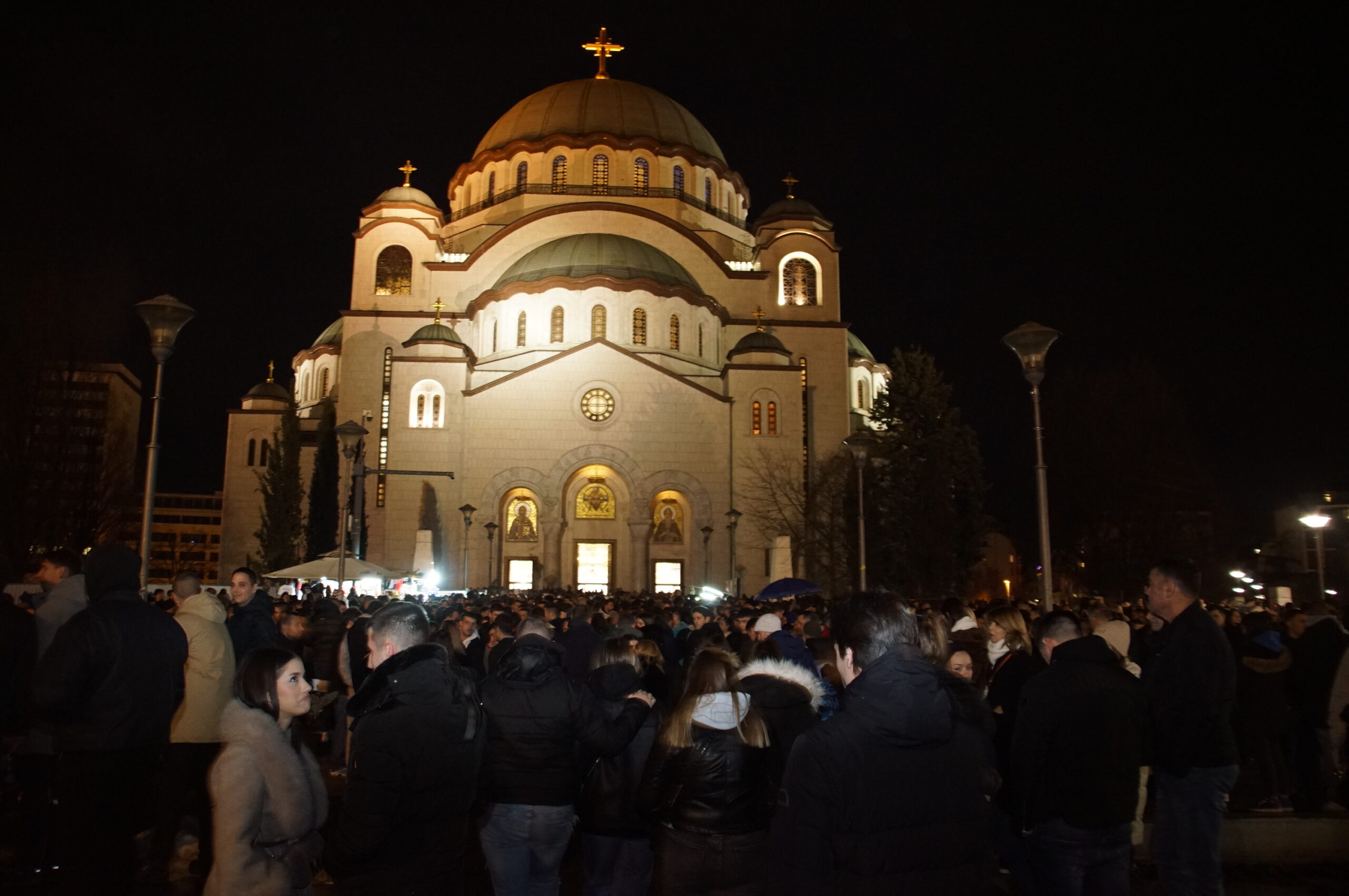 U Hramu Svetog Save ponoćnu liturgiju služio je vikar patrijarha episkop hvostanski Aleksej, uz sasluženje sveštenika beogradskih crkava.