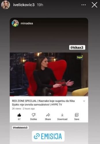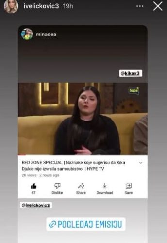 Naime ona je na svom Instagram nalogu podelila delove emisije autorke i voditeljke emisije Katarine Ristić.