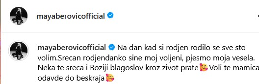 – Na dan kad si rođen rodilo se sve što volim. Srećan rođendanko sine moj voljeni, pesmo moja vesela. Neka te sreća i Božiji blagoslov kroz život prate. Voli te mamica odavde do beskraja – napisala je ona.