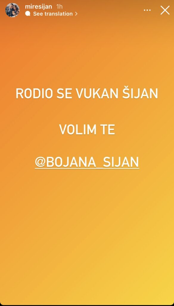 – Bravo, snajka. Rodio se Vukan – napisala je ponosna tetka, a i ponosni tata je obavestio svoje pratioce na Instagramu da je stigao Vukan Šijan.