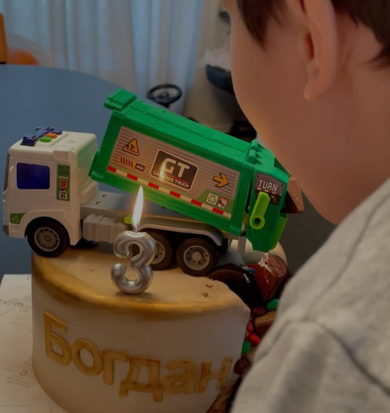 Jelisaveta Orašanin je emotivnim nizom fotografija obeležila ovaj važan dan u životu, a među fotografijama se našla i jedna koja je pokazala malenog Bogdana koji duva svećice sa torte na kojoj je dominirao veliki kamion.